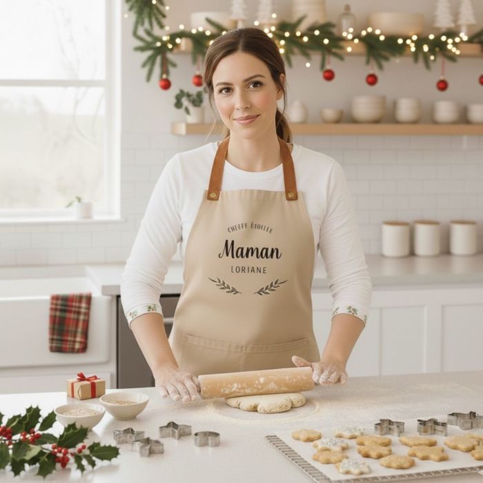 Tablier de cuisine personnalisé avec laurier et texte