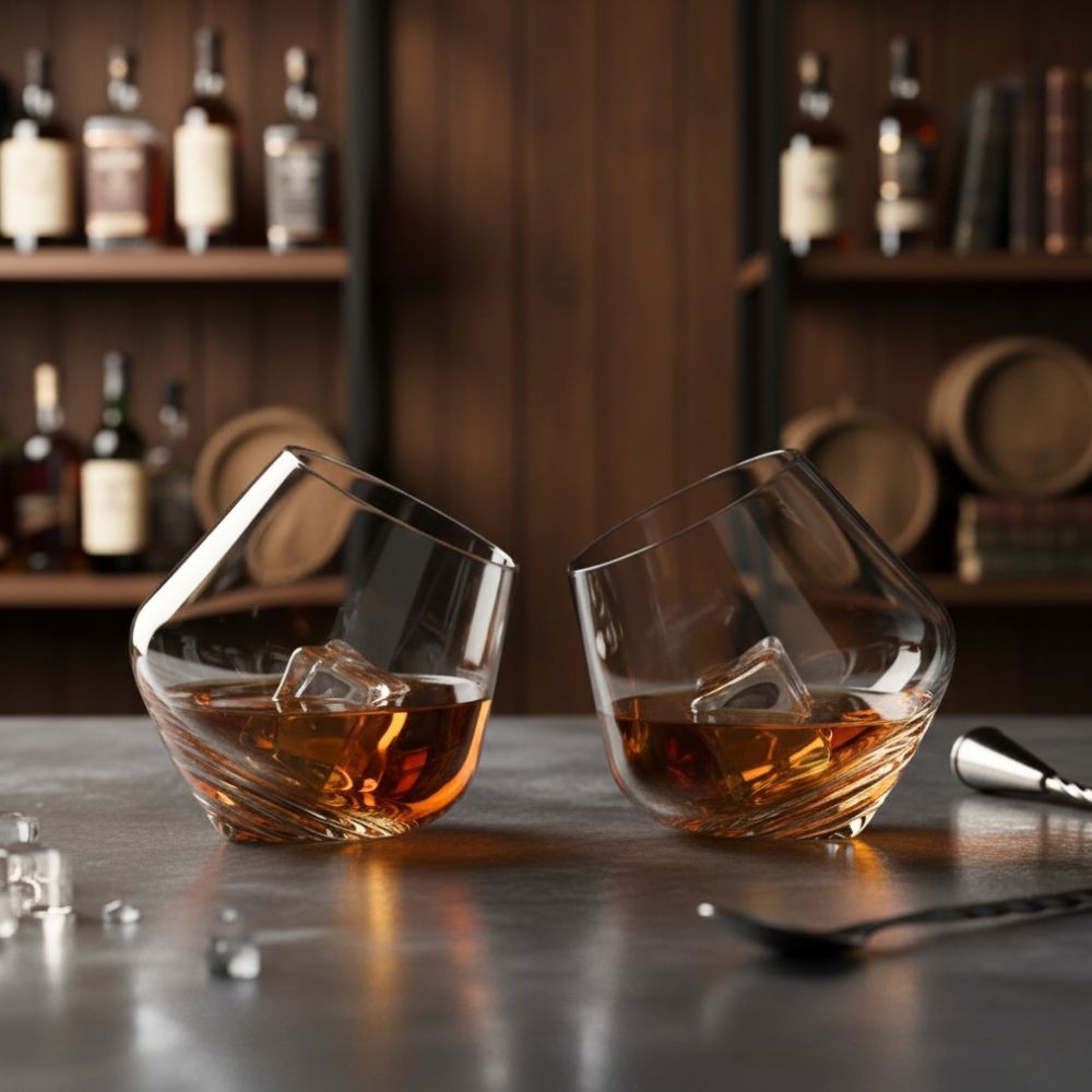 Ce duo de 2 verres à whisky toupie feront danser les couleurs de votre whisky dans un doux mouvement circulaire. Grâce à leur forme originale, ces verres roulent délicatement en inclination, sans renverser une seule goutte.
